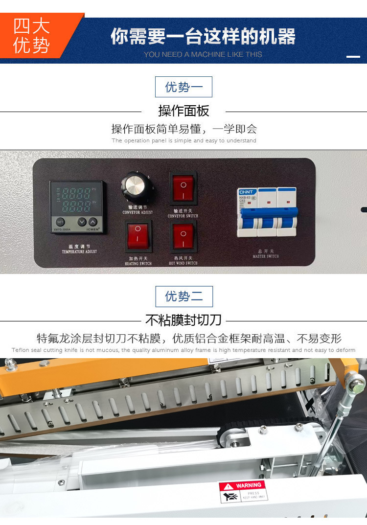 - 包裝效果好:封切精準,封口牢固、平整,熱收縮均勻,能使薄膜緊密貼合產品,包裝外觀美觀、整齊,提升產品的視覺效果和市場競爭力。