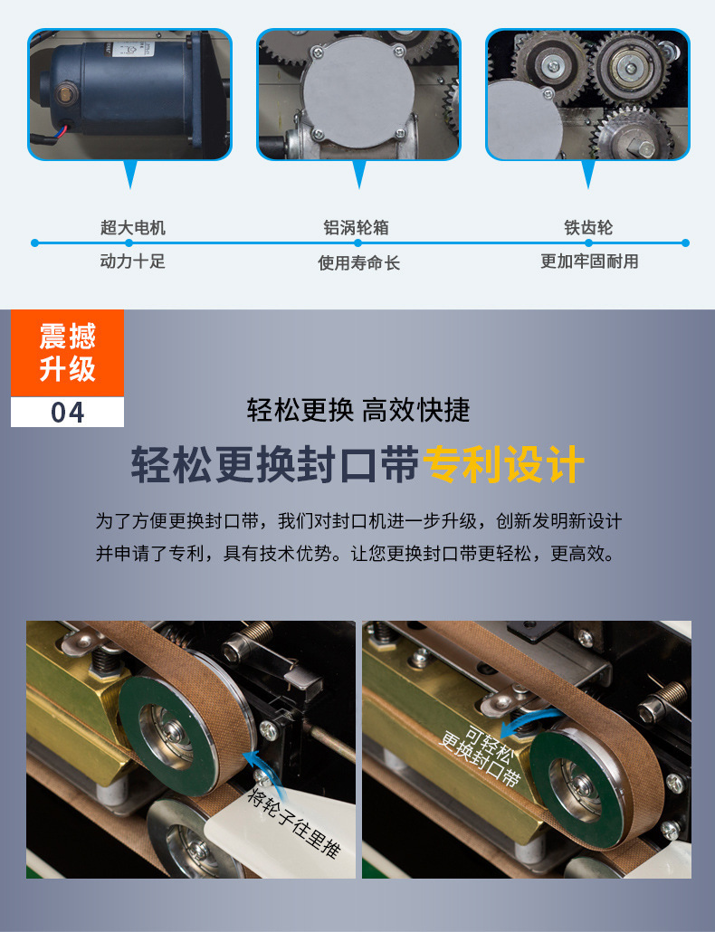立式封口機可用于各種尺寸的包裝袋,尤其是大型包裝袋的封口作業,如大米、面粉、狗糧等大包裝產品,也適用于液體、粉末、重物等不同類型物料的包裝封口