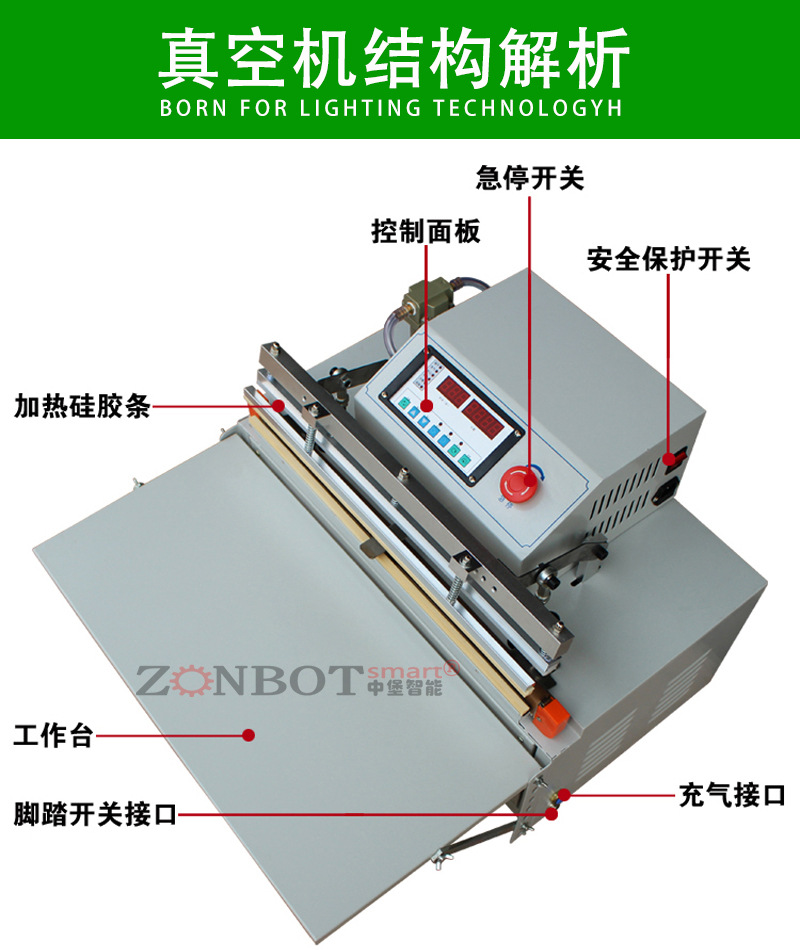臺式外抽真空包裝機通過真空泵將包裝袋內的空氣抽出,形成真空環境,然后進行熱封或冷封操作,以達到密封包裝的目的。其工作過程通常包括以下幾個步驟: