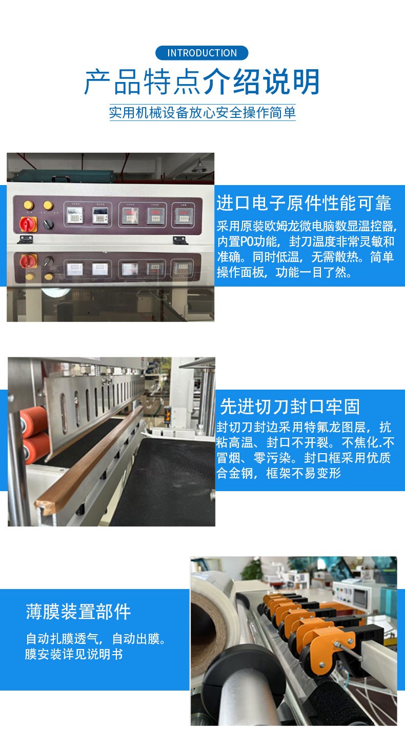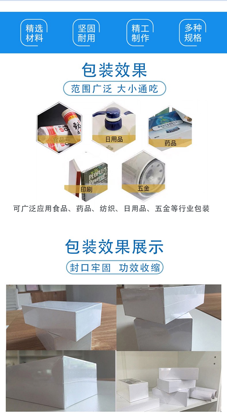• 厚度:薄膜的厚度會(huì)影響邊封的溫度、壓力和時(shí)間等參數(shù)。較厚的薄膜可能需要更高的溫度和更大的壓力來進(jìn)行封口,而且在熱收縮過程中也可能需要更長(zhǎng)的時(shí)間或者更高的溫度。因此,在選擇設(shè)備時(shí)要考慮其是否能夠滿足不同厚度薄膜的包裝要求。