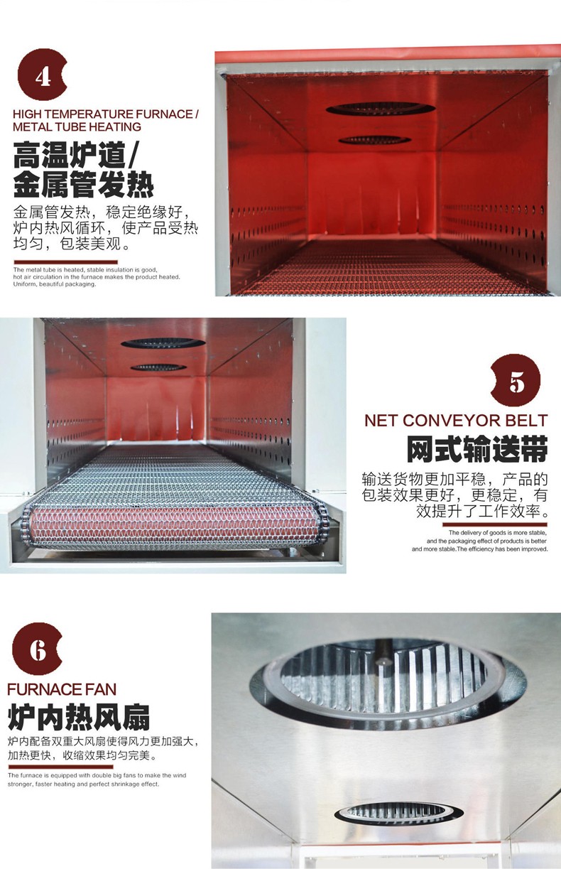 • 設(shè)備維護與保養(yǎng):定期對設(shè)備進行維護和保養(yǎng),包括清潔加熱元件、檢查風(fēng)機的運行情況、更換輸送帶等。保持設(shè)備的良好狀態(tài)可以延長設(shè)備的使用壽命,提高包裝質(zhì)量和效率。