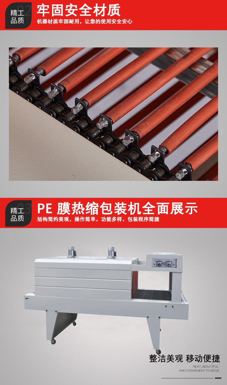 主要包括輸送帶和驅(qū)動電機。輸送帶用于承載并輸送被 PE 薄膜包裹的產(chǎn)品通過加熱區(qū)域。驅(qū)動電機控制輸送帶的速度,這個速度是可以調(diào)節(jié)的。其重要性在于確保產(chǎn)品在加熱區(qū)域停留足夠的時間,讓 PE 薄膜充分收縮。例如,如果輸送帶速度太快,PE 薄膜可能來不及完全收縮就離開了加熱區(qū)域,導(dǎo)致包裝質(zhì)量不佳;如果速度太慢,又會影響包裝效率。