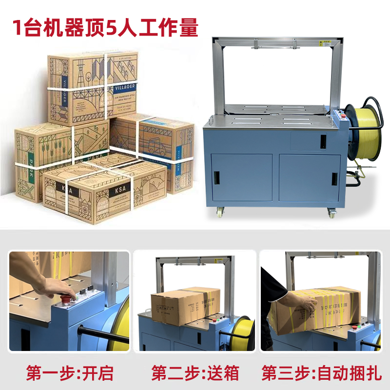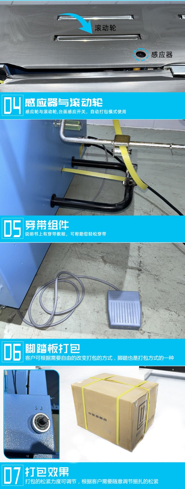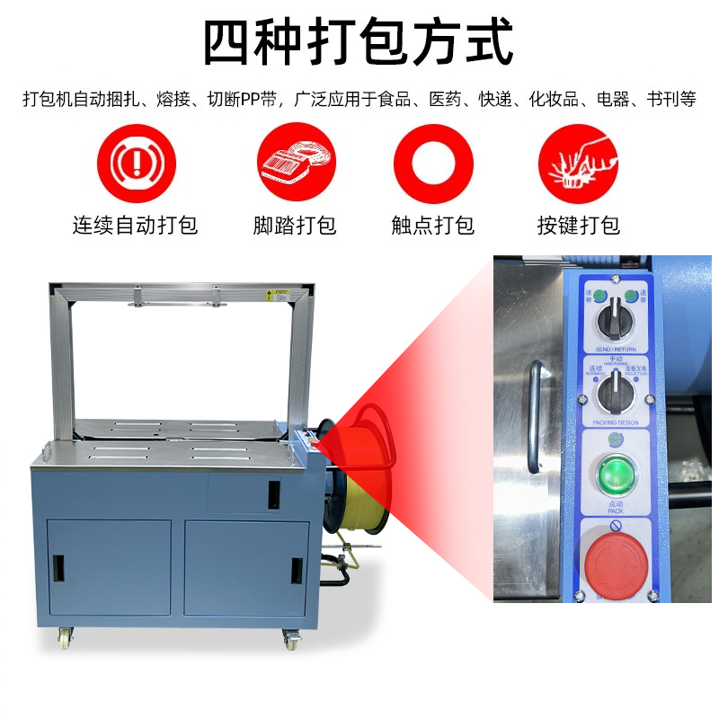 • 自動上帶:機(jī)器啟動后,會自動從打包帶卷中抽出打包帶,并將其傳送到預(yù)定的位置,準(zhǔn)備進(jìn)行打包。這個過程無需人工干預(yù),大大提高了工作效率。
