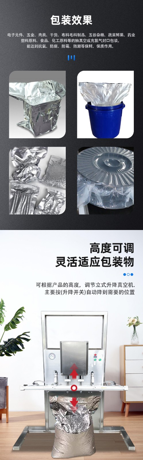 • 包裝效果好:能夠?qū)崿F(xiàn)高效的抽真空和密封功能,使包裝內(nèi)的物品處于真空狀態(tài),有效防止物品受潮、受腐蝕氣體及鹽霧侵蝕,延長物品的保質(zhì)期和使用壽命2
