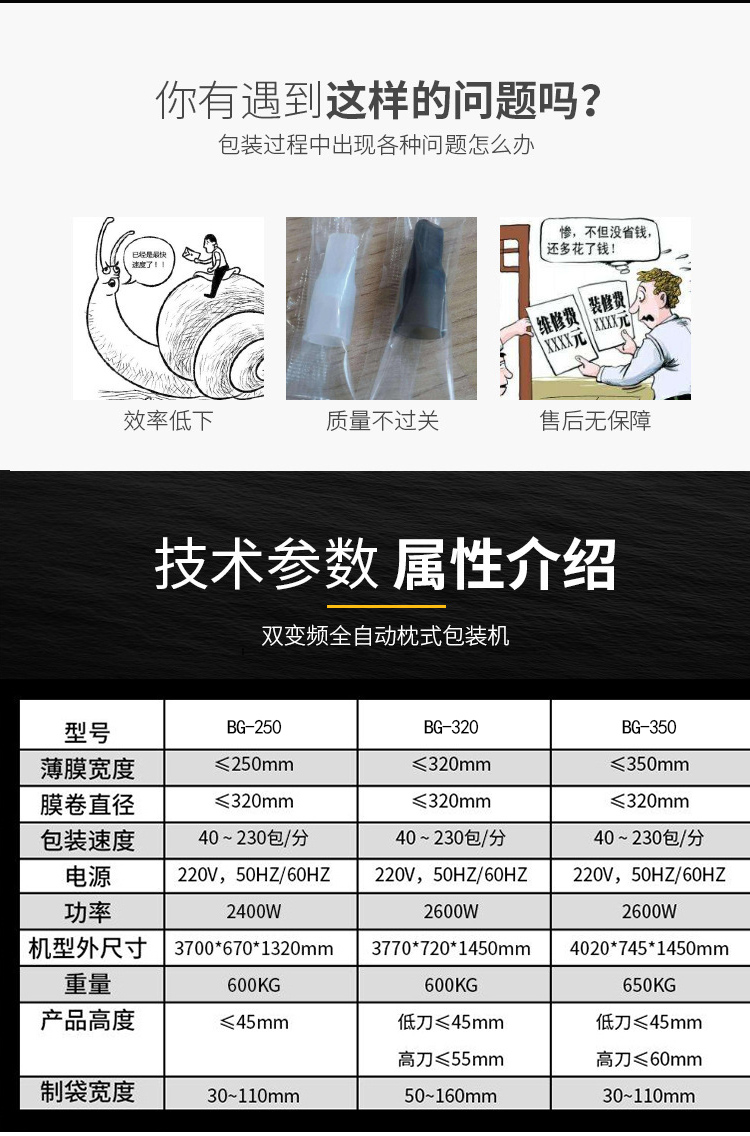 BG-350全自動枕式包裝機 三伺服封口機 蔬菜水果保鮮膜打包封口機
