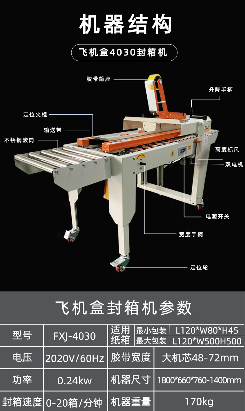 4030型飛機(jī)盒電商專(zhuān)用快遞封箱機(jī)膠帶郵政1-12號(hào)紙箱包裝機(jī)