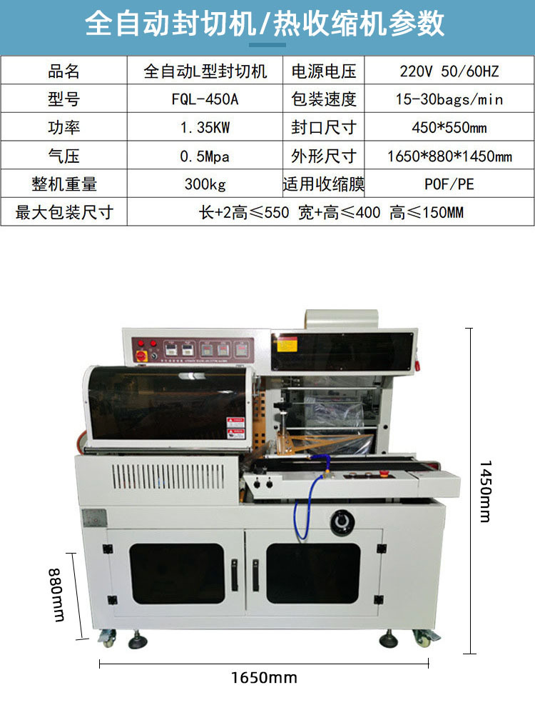 全自動(dòng)L型封切機(jī)采用環(huán)保材料制成,無污染、低噪音,既能降低使用成本,又能滿足綠色環(huán)保要求。讓您的企業(yè)形象更上一層樓!