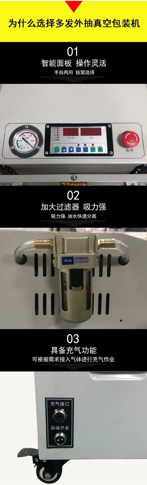 外抽真空包裝機主要應用于同時需要抽真空及壓送氣體的場合,特別適用于易燃、易爆氣體的抽取和壓送及用于壓縮包裝羽絨被服、太空棉被服、枕頭等蓬松的物品,可縮小包裝空間及防潮防塵,降低儲藏及運輸費用。