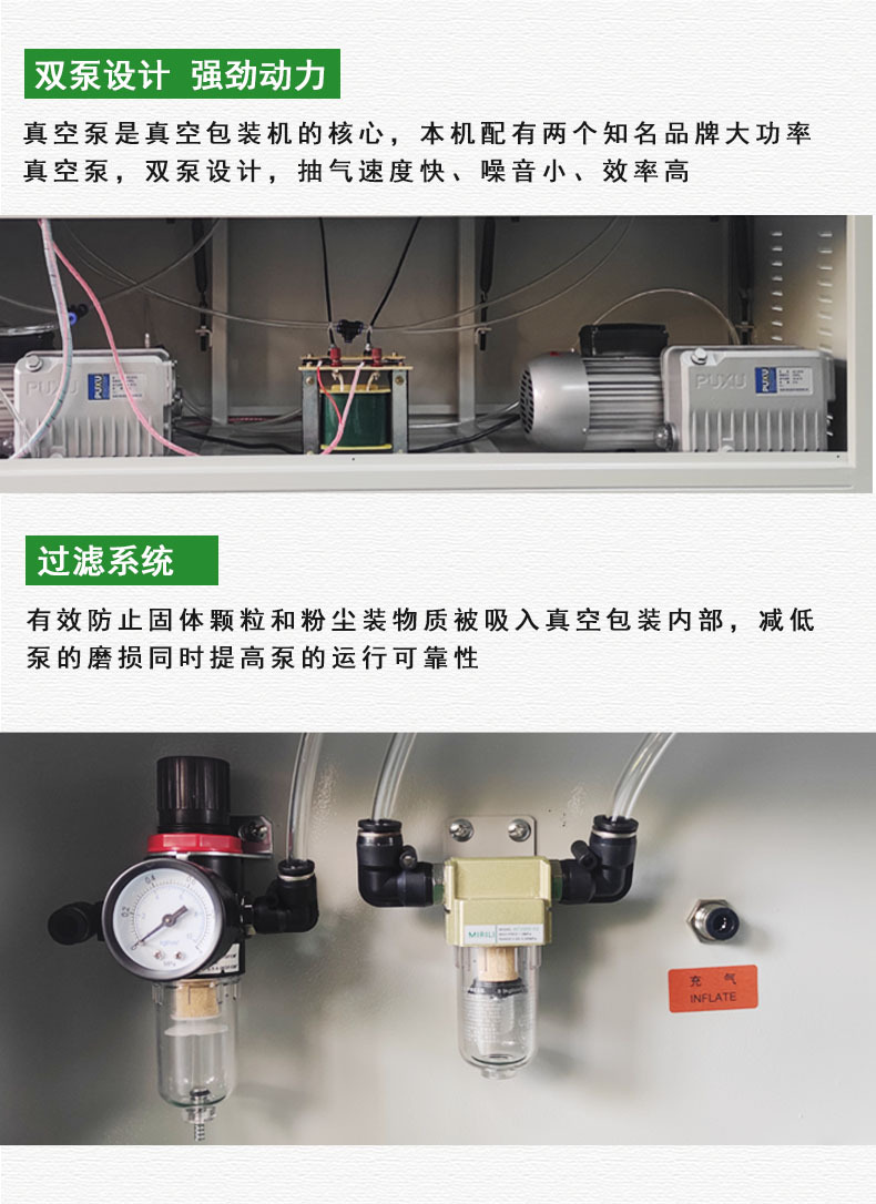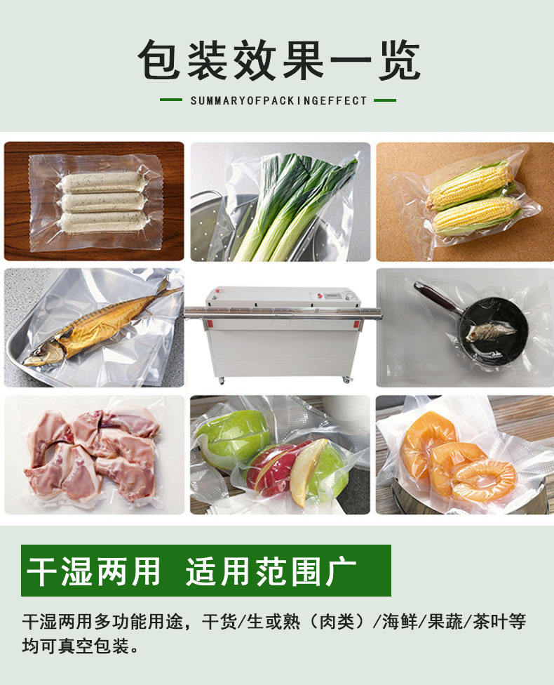 (3)被包裝物品真空度的要求。如包裝物品需要在真空度較高的條件下才能完好保存,則需選擇腔式真空包裝機。