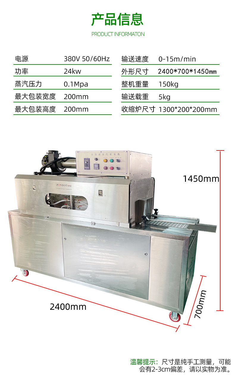 2020蒸汽式熱收縮機廣泛應用于大桶或小瓶裝礦泉水、純凈水;汽水和茶飲料等食品飲料行業,以及化妝品、洗發水和五金電子等需要收縮膜包裝的場合使用