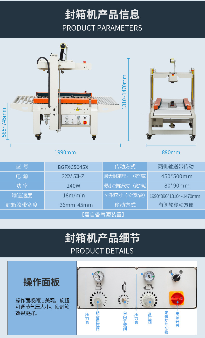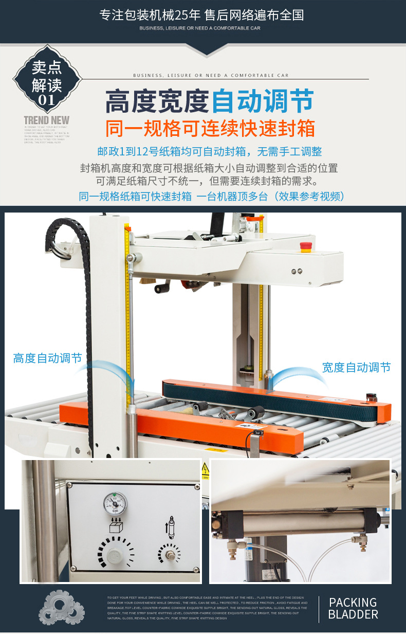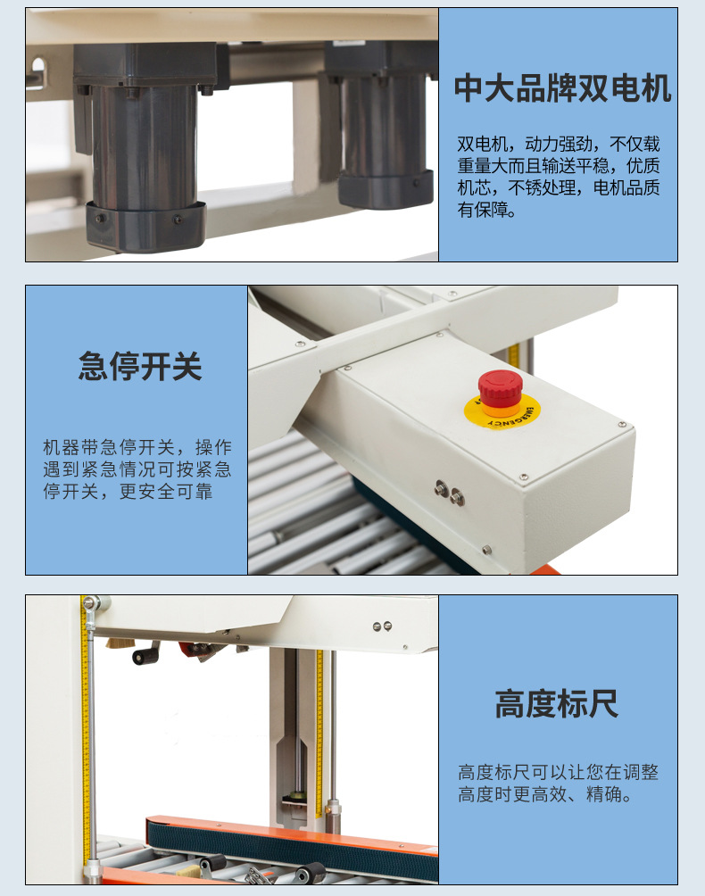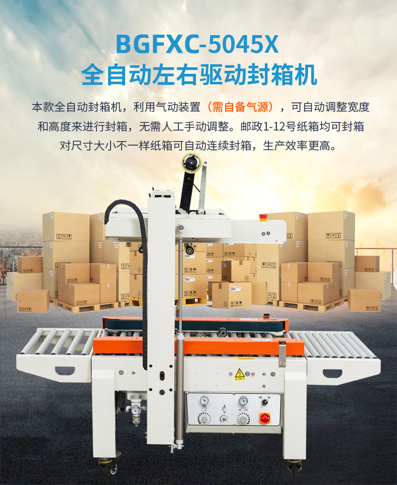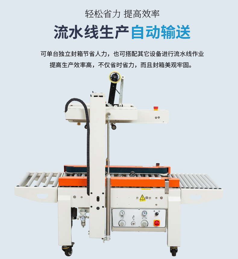 封箱機,也稱為Case sealer machine,主要用于紙箱的封箱包裝。它們不僅適用于單機作業(yè),也可以與流水線配套使用,是包裝流水線作業(yè)中不可或缺的設(shè)備。封箱機的功能包括自動折疊、粘合和封口紙箱,通過先進(jìn)的感應(yīng)和控制技術(shù),能夠自動檢測和調(diào)整紙箱尺寸,按照設(shè)計要求進(jìn)行折疊和封口操作,大大提高了包裝的效率和一致性,減少了人工操作的錯誤和勞動強度。