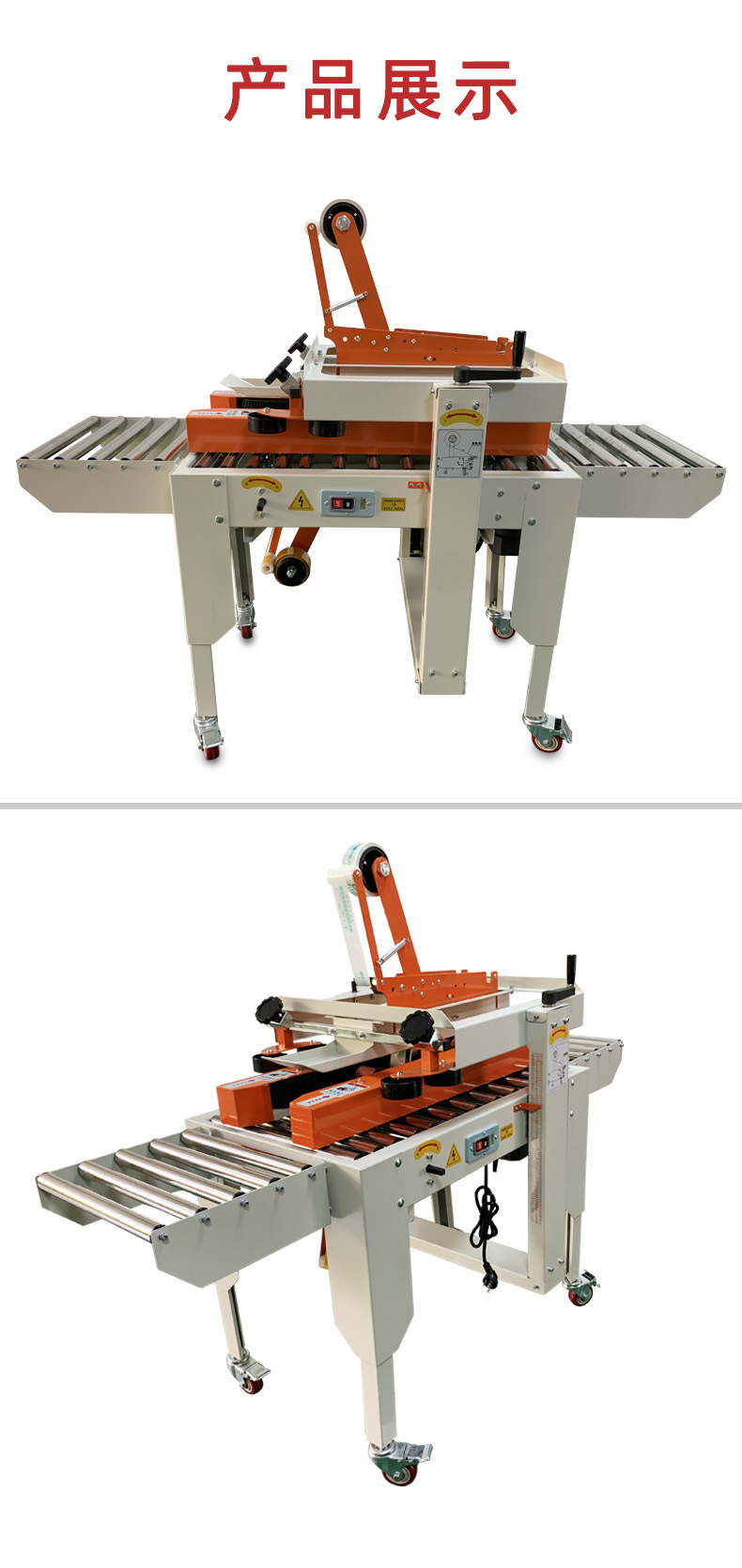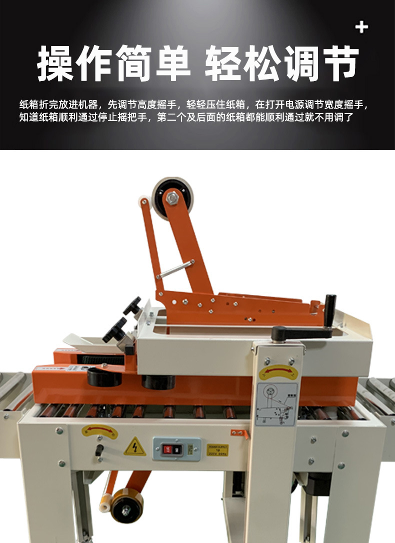 封箱機,也稱為Case sealer machine,主要用于紙箱的封箱包裝。它們不僅適用于單機作業,也可以與流水線配套使用,是包裝流水線作業中不可或缺的設備。封箱機的功能包括自動折疊、粘合和封口紙箱,通過先進的感應和控制技術,能夠自動檢測和調整紙箱尺寸,按照設計要求進行折疊和封口操作,大大提高了包裝的效率和一致性,減少了人工操作的錯誤和勞動強度。