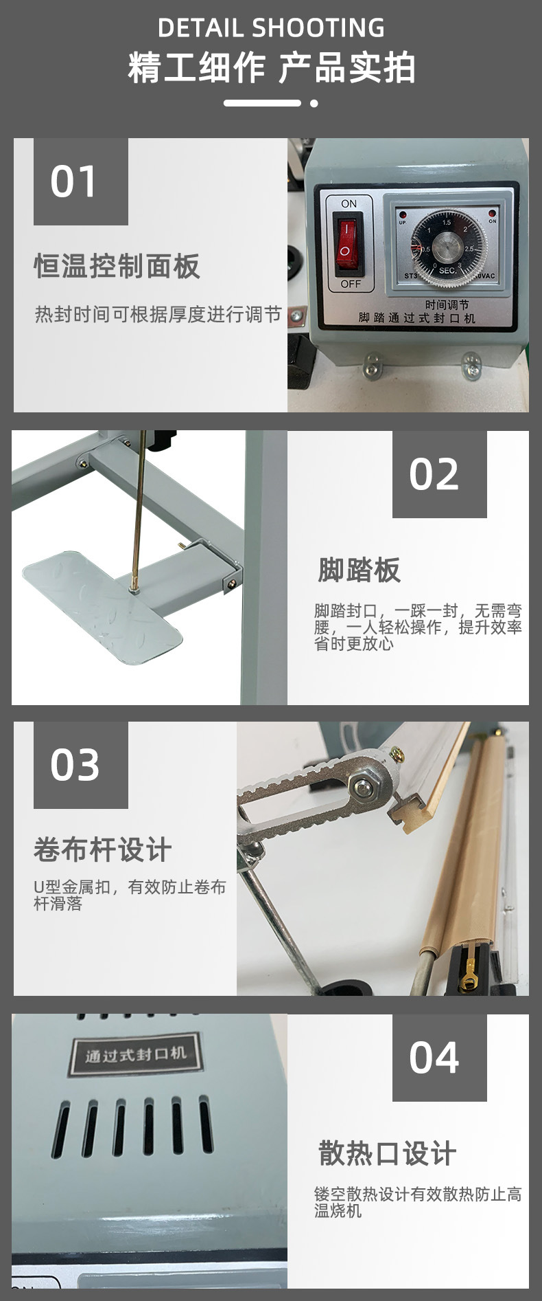 腳踏封口機是根據國內外先進的機型基礎上,重新設計制造而成,適用于所有塑料袋薄膜封口及制袋,是食品廠,化妝品廠,藥廠等單位的理想封口設備。 腳踏封口機適用于各種塑料薄膜、?復合薄膜及鋁塑薄膜的封合。?這種封口機因其高效、?簡單操作和廣泛的應用領域,?被廣泛應用于食品、?醫藥、?五金等多個行業。?
