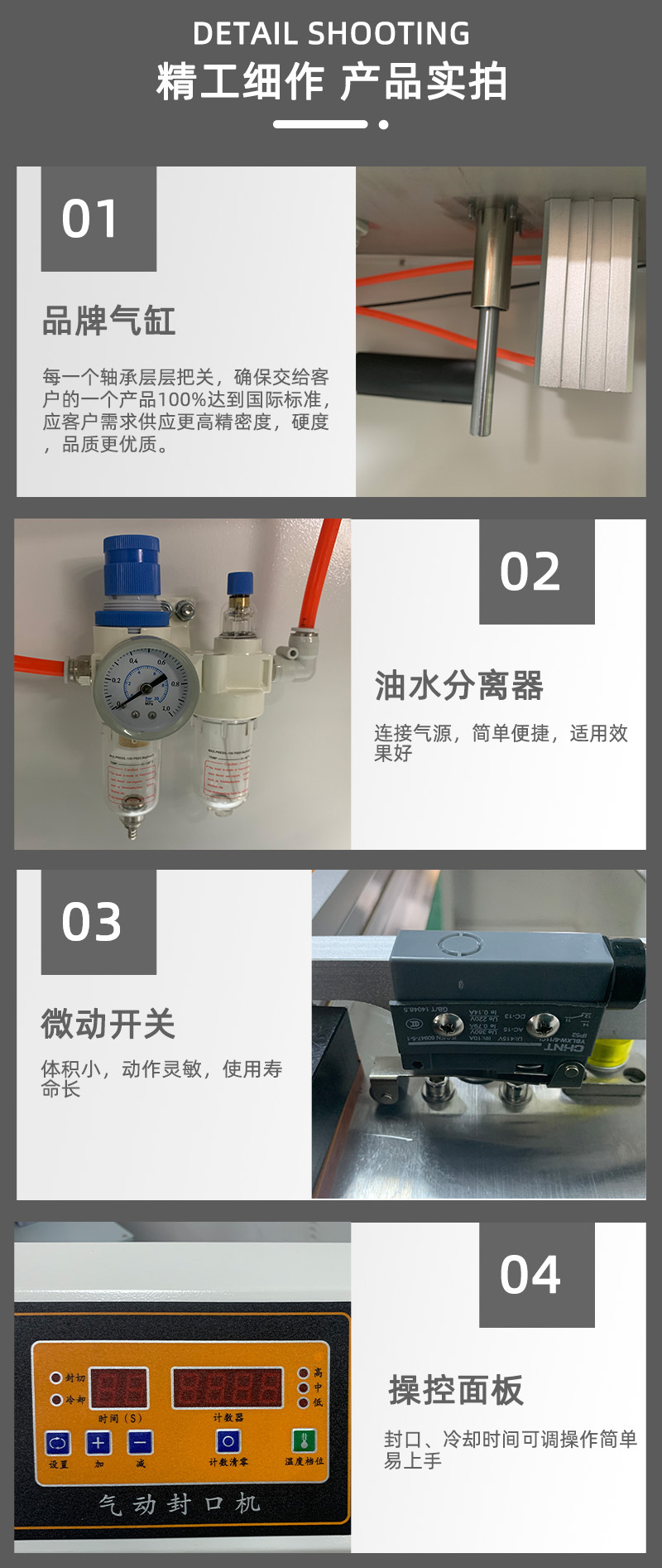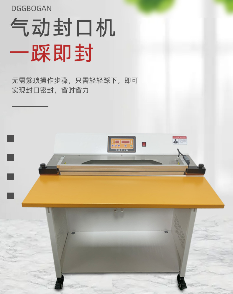 氣動封口機是一種新穎的氣電一體化包裝機械,是柔軟物質、儲存、產品防潮運輸領域中不可缺少的必要手段