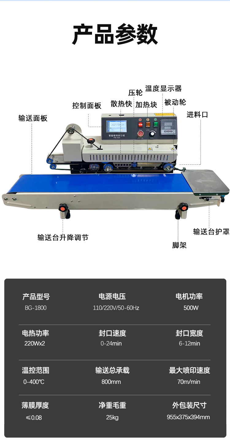 連續式封口機 連續式智能噴碼封口機 鋁箔袋封口機 塑料袋封口機 復合袋封口機 連續式噴碼封口機