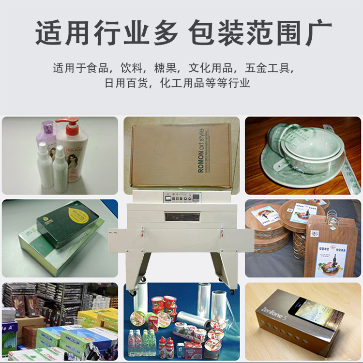 熱收縮機被廣泛應用于玻璃瓶、發泡膠、紙盒、玩具、電子、電器、文具、圖書、唱片、五金工具、日用品、藥品、化妝品、飲料、水果、紀念標簽等物品包裝。